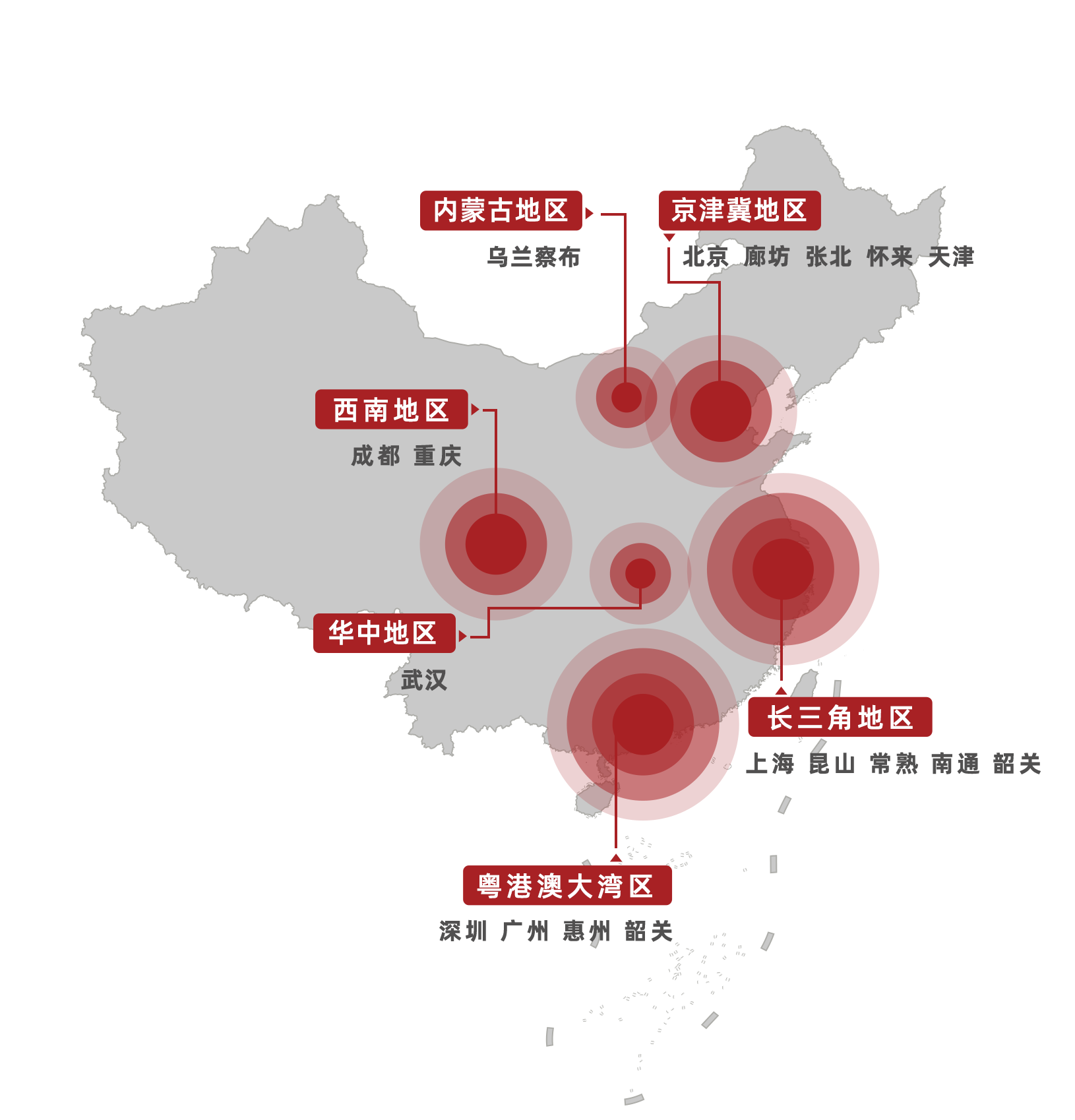 - 5大区域化布局